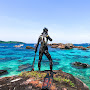 How far have we come as a species… That guy looking like a fish down there.